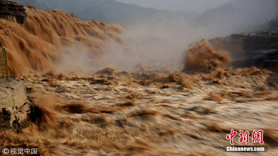 7月17日,山西臨汾,游客在黃河壺口瀑布游覽觀瀑。進(jìn)入7月主汛期,受黃河上游降雨量增多影響,位于山西吉縣和陜西宜川縣交界的黃河壺口瀑布水量暴漲。濁浪滔天的壯美瀑布群景觀,吸引了眾多游客。呂桂明攝 圖片來源:視覺中國(guó)