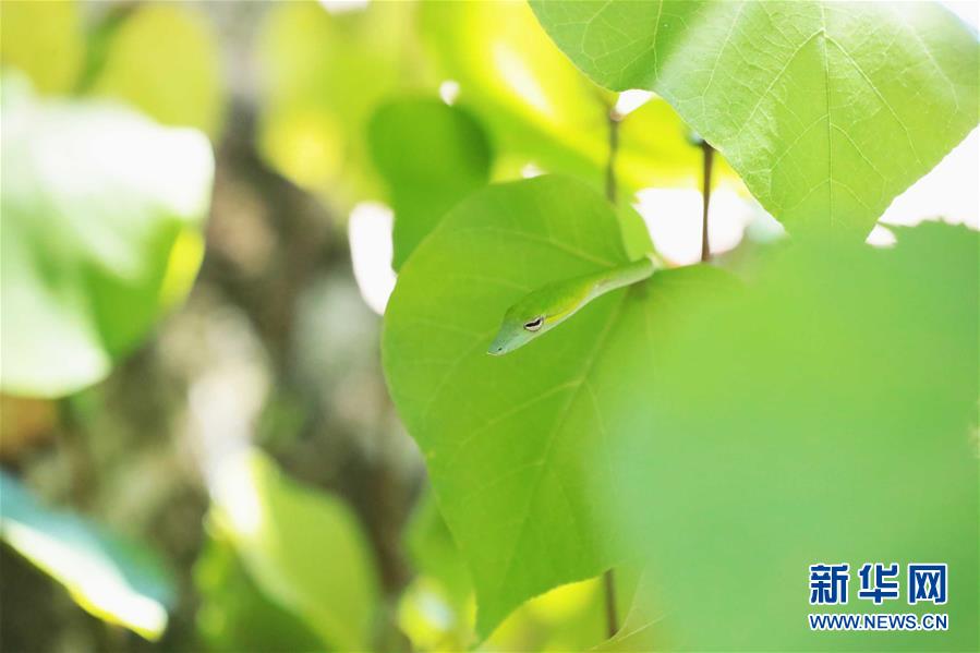 這是7月19日在馬來西亞沙撈越州峇哥國(guó)家公園拍攝的綠瘦蛇。設(shè)立于1957年的峇哥國(guó)家公園坐落于馬來西亞沙撈越州,擁有豐富的野生動(dòng)植物物種。新華社記者 朱煒 攝