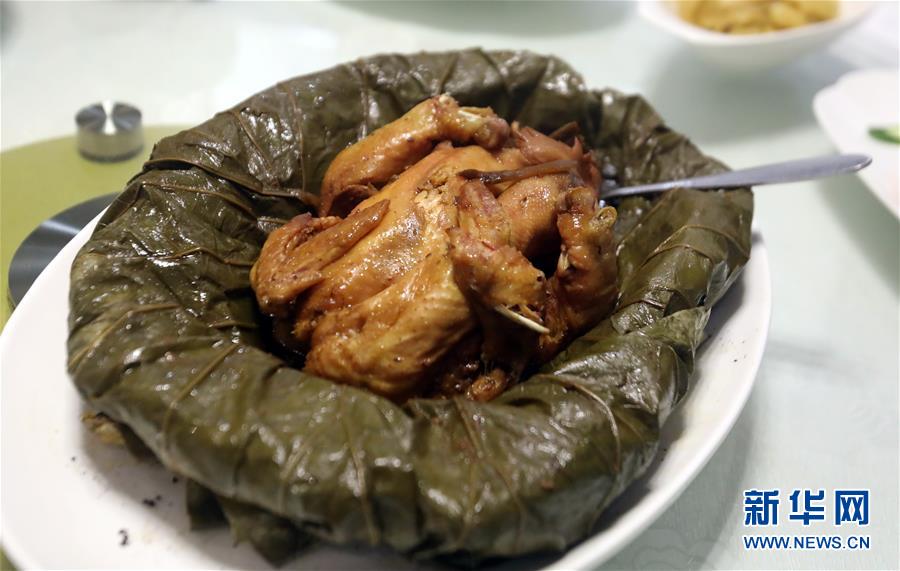 這是在香港灣仔杭州酒家拍攝的“叫化雞”(6月16日攝)。 金庸在武俠小說《神雕俠侶》中借郭靖之口說過: “為國(guó)為民,俠之大者?!蔽鋫b精神在香港備受推崇,有其心向中華文化的情感基礎(chǔ)。在這個(gè)國(guó)際美食之都,品味舌尖上的武俠味,內(nèi)中的感覺別有深意。新華社記者 李鵬 攝