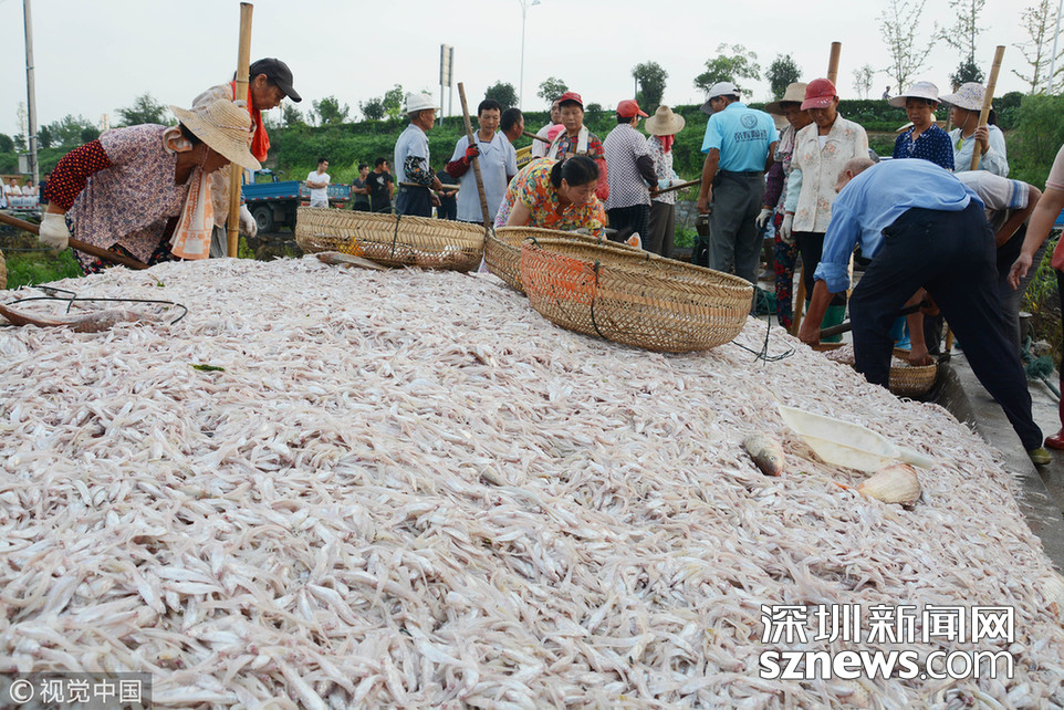 ??? 2018年6月26日,江蘇省常州市嘉澤鎮(zhèn)捕撈村的漁民組織夏季捕撈,一網(wǎng)魚達(dá)五萬(wàn)余斤,以鰱魚為主,供應(yīng)市場(chǎng)需求。夏捕的魚價(jià)較平時(shí)有所上漲,漁民粗略估計(jì)可增收上萬(wàn)余元。