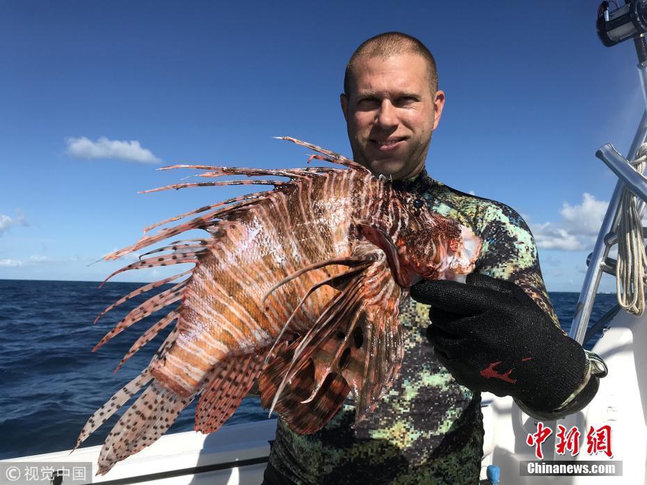8月21日訊(具體拍攝時(shí)間不詳),近日,來(lái)自長(zhǎng)島的Timothy Blasko打破了記錄,他捕獲了大西洋最重的獅子魚。37歲的Timothy Blasko是一名技術(shù)精湛的捕魚者,當(dāng)天,他和朋友們?cè)诜鹆_里達(dá)群島伊斯拉莫拉達(dá)海岸捕魚時(shí),遇到了這條大魚。Timothy向朋友要來(lái)了魚叉,瞄準(zhǔn)大魚的下方位置叉去,正中目標(biāo)成功捕獲。當(dāng)他們把這條魚和當(dāng)天捕獲的其它魚排在一起時(shí),他們猜測(cè)這條魚可能會(huì)破紀(jì)錄?!八?jiǎn)直是獅子魚中的哥斯拉!” Timothy描述道,“這條巨大的獅子魚重達(dá)3.1磅,刷新了大西洋迄今最重獅子魚的國(guó)家紀(jì)錄?!眻D片來(lái)源:視覺(jué)中國(guó)