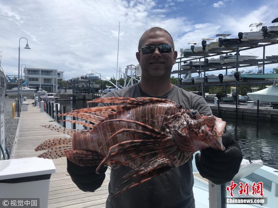 8月21日訊(具體拍攝時(shí)間不詳),近日,來(lái)自長(zhǎng)島的Timothy Blasko打破了記錄,他捕獲了大西洋最重的獅子魚。37歲的Timothy Blasko是一名技術(shù)精湛的捕魚者,當(dāng)天,他和朋友們?cè)诜鹆_里達(dá)群島伊斯拉莫拉達(dá)海岸捕魚時(shí),遇到了這條大魚。Timothy向朋友要來(lái)了魚叉,瞄準(zhǔn)大魚的下方位置叉去,正中目標(biāo)成功捕獲。當(dāng)他們把這條魚和當(dāng)天捕獲的其它魚排在一起時(shí),他們猜測(cè)這條魚可能會(huì)破紀(jì)錄?!八?jiǎn)直是獅子魚中的哥斯拉!” Timothy描述道,“這條巨大的獅子魚重達(dá)3.1磅,刷新了大西洋迄今最重獅子魚的國(guó)家紀(jì)錄。”圖片來(lái)源:視覺(jué)中國(guó)