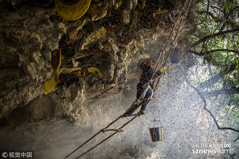 ?“最難采摘的崖蜜,是凹進(jìn)懸崖內(nèi)側(cè)3至5米的那種?!眱赡陙?,小蕊親自跟采了十幾趟蜜,最怕遇到凹陷的蜜源。