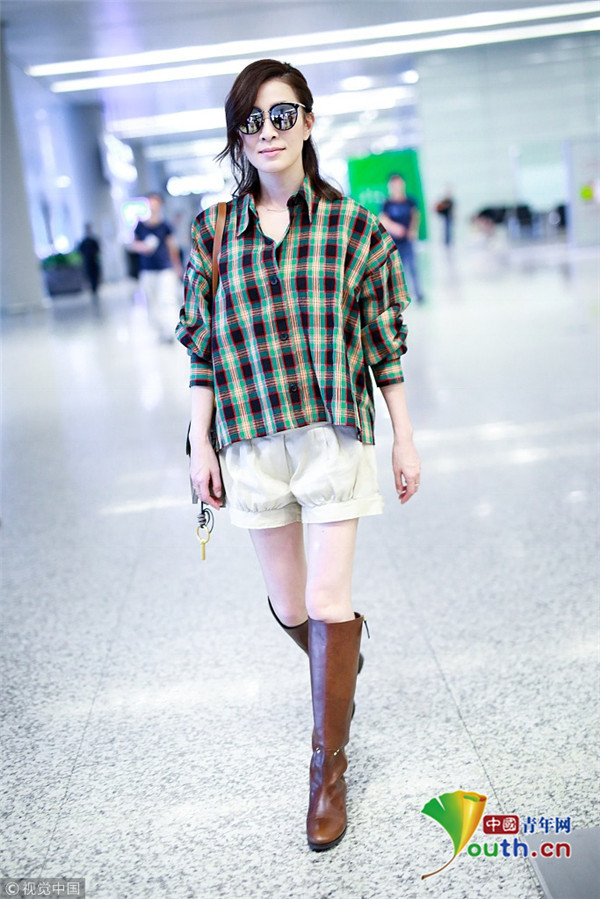 2018年9月9日,“嫻妃”佘詩曼從上海機(jī)場飛往北京機(jī)場,她擺“剪刀腿”大方任拍,身穿格紋襯搭配衫燈籠褲,時(shí)髦青春衣品超贊!