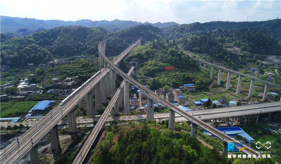 貴州省地處中國西南腹地,全省高原山地居多,因此高鐵建設(shè)的橋隧占比較高。在貴陽市烏當(dāng)區(qū)新添寨,高鐵滬昆線、貴廣客運專線、貴開城際客運專線的隧道和橋梁交織在一起,形成“五洞五橋”并行,形似“五龍出?!钡膲延^景象(3月29日攝)。新華網(wǎng)盧志佳 攝