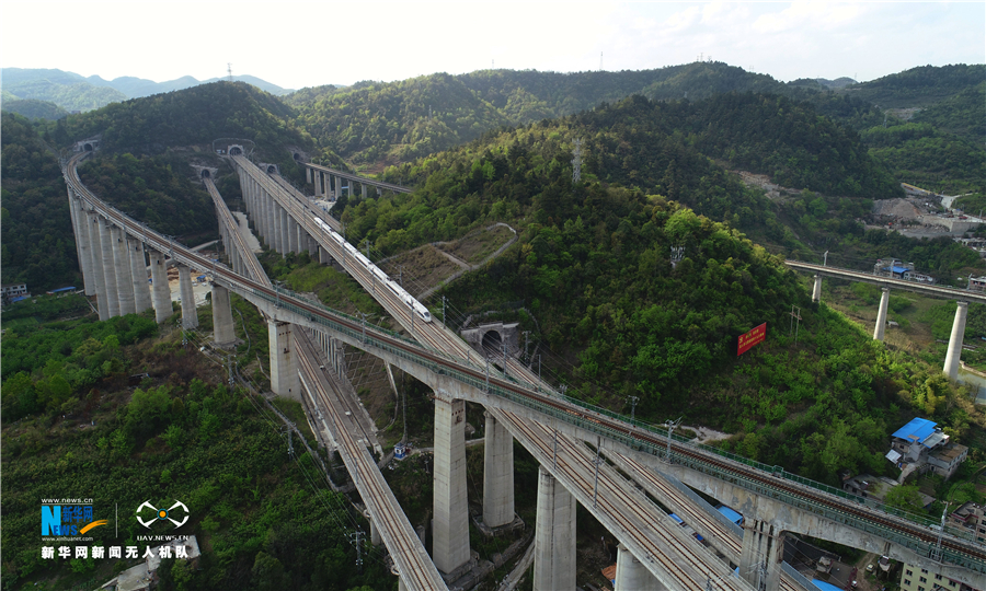 貴州省地處中國西南腹地,全省高原山地居多,因此高鐵建設(shè)的橋隧占比較高。在貴陽市烏當(dāng)區(qū)新添寨,高鐵滬昆線、貴廣客運專線、貴開城際客運專線的隧道和橋梁交織在一起,形成“五洞五橋”并行,形似“五龍出?!钡膲延^景象(3月29日攝)。新華網(wǎng)周遠(yuǎn)鋼 攝