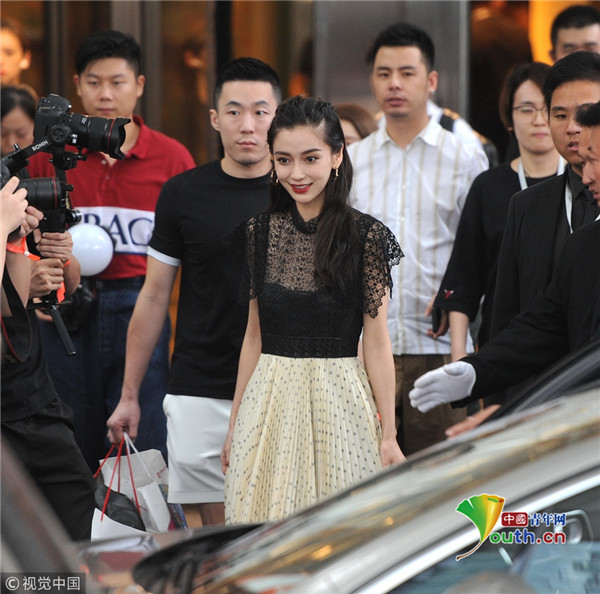 趙麗穎荷葉邊連衣裙亮相 甜美迷人