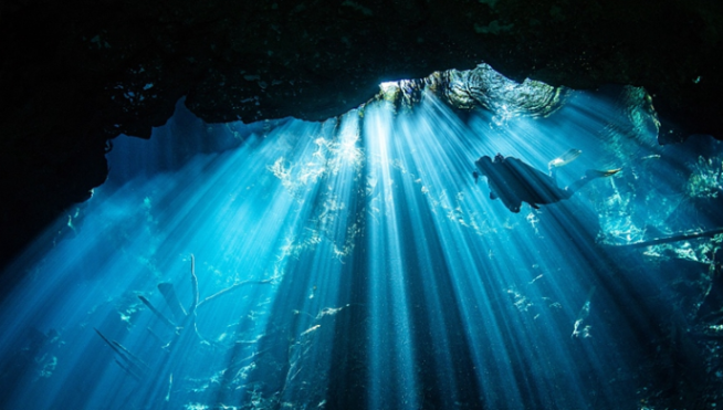 光線射入水下洞穴盡顯幻美 潛水員如 ...