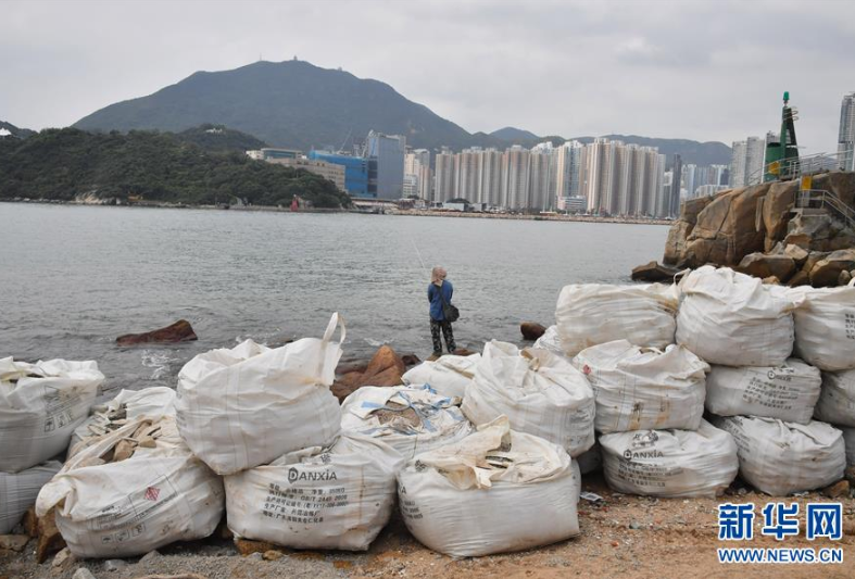 9月14日,工作人員在香港三家村放置沙包防止洪水。新華社記者呂小煒攝