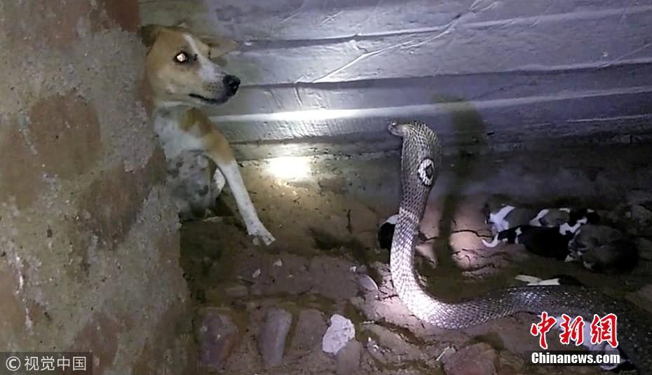 9月20日訊(具體拍攝時(shí)間不詳),印度奧里薩邦,一只寵物狗勇敢地挽救了新生幼犬的生命,它擊退了一條可怕的眼鏡蛇。面對(duì)一條巨大的斑點(diǎn)眼鏡蛇——世界上最毒的蛇之一——這位新媽媽勇敢保護(hù)僅出生兩天的幼崽。但不幸的是,盡管狗狗盡了最大的努力,蛇還是在救援人員救出幼犬之前仍殺死了4只小狗。圖片來源:視覺中國
