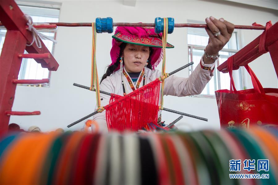 員工卓瑪在鹽湖鄉(xiāng)羌麥村民族手工編織廠工作(9月19日攝)。 2018年,西藏阿里地區(qū)革吉縣鹽湖鄉(xiāng)政府自籌資金成立羌麥村民族手工編織廠,編織廠將當(dāng)?shù)貍鹘y(tǒng)手工編織技藝與市場(chǎng)需求相結(jié)合,生產(chǎn)手提包、圍脖、腰帶、毛毯、藏式頭巾等產(chǎn)品,并參加旅游推介活動(dòng),拓寬編織品銷售渠道,助力當(dāng)?shù)鼐用衩撠殹?新華社記者 劉東君 攝