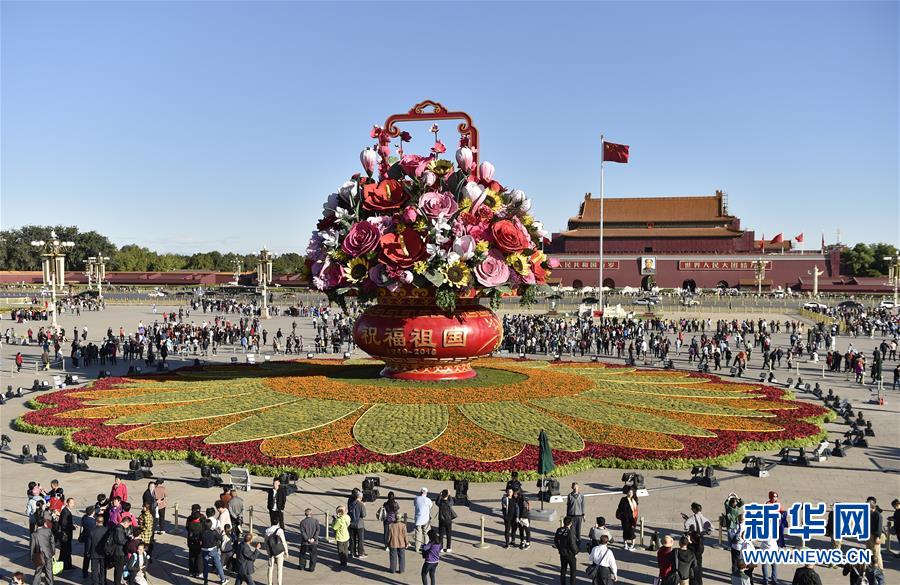 “祝福祖國”巨型花籃全面亮相