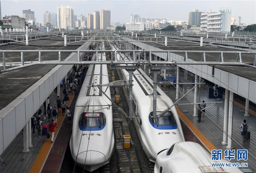 在廣西南寧站,旅客進(jìn)入站臺(tái)準(zhǔn)備乘坐動(dòng)車出行(9月4日攝)。 廣西壯族自治區(qū)成立60年來(lái),鐵路建設(shè)發(fā)生翻天覆地的變化。來(lái)自中國(guó)鐵路南寧局集團(tuán)有限公司的數(shù)據(jù)顯示,1958年廣西鐵路總里程為1346.3公里,如今廣西鐵路總里程達(dá)5191公里。廣西與周邊相鄰省份間實(shí)現(xiàn)動(dòng)車“公交化”開(kāi)行。此外,北部灣港—重慶班列、東盟海產(chǎn)品冷鏈班列、“百色一號(hào)”果蔬專列等的開(kāi)通和運(yùn)營(yíng),強(qiáng)化了鐵路供給的針對(duì)性和有效性。鐵路成為助推廣西經(jīng)濟(jì)社會(huì)快速發(fā)展的“大動(dòng)脈”。 新華社記者陸波岸攝