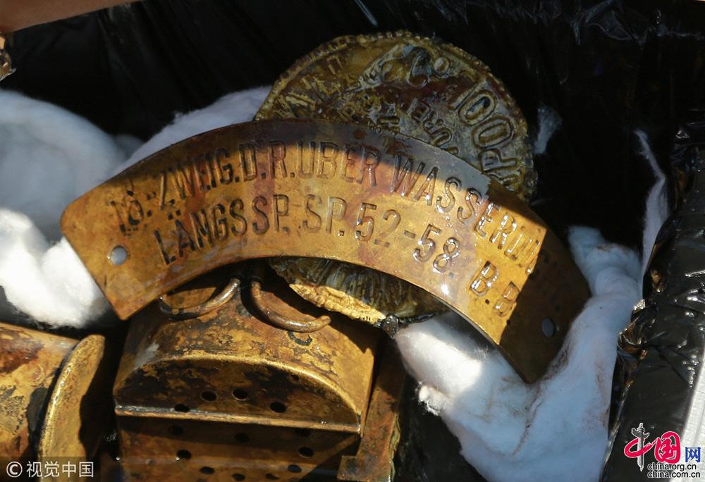 2018年9月25日,遼寧大連,在莊河黑島海域甲午戰(zhàn)爭“經(jīng)遠艦”遺址出水的各類遺物標本。視覺中國