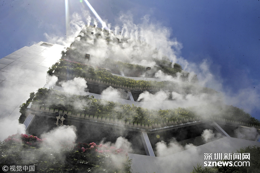 深圳新聞網(wǎng)訊 2018年6月10日,西安,高樓外長滿綠植,還縈繞著霧氣。這段只有6秒的短視頻在抖音火了,網(wǎng)友評論這是“第四代住房”,其實這是西安市眾創(chuàng)示范街區(qū)的一處安裝了智能霧森系統(tǒng)的西北最大戶外垂直綠化。
