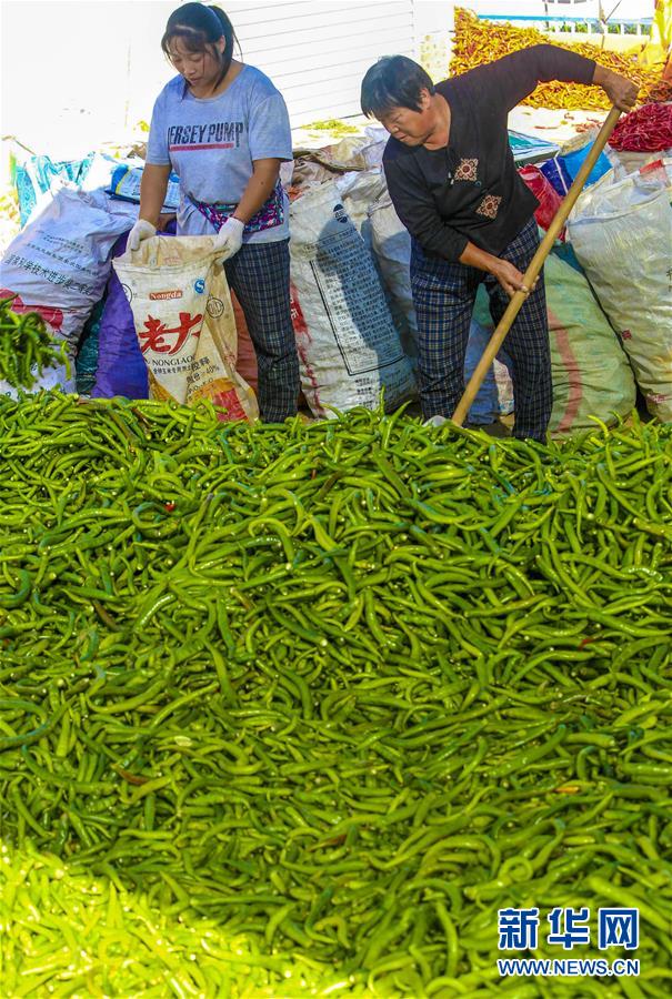 9月28日,饒陽縣留楚鄉(xiāng)影林村的種植戶在將辣椒裝袋。 近年來,河北省饒陽縣結合市場需求,積極引進特色品種辣椒種植,開辟出一條農民增收致富新路。目前,該縣特色辣椒種植面積1000余畝,種植戶年均增收3000余元。 新華社記者 李曉果攝