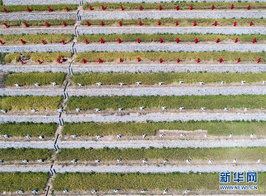 9月29日,太極拳愛(ài)好者在建德市大洋鎮(zhèn)高垣村的千畝梯田上進(jìn)行表演(無(wú)人機(jī)拍攝)。當(dāng)日,2000多名太極拳愛(ài)好者在浙江省建德市大洋鎮(zhèn)高垣村的千畝梯田上參加太極拳表演,吸引很多當(dāng)?shù)厝撕陀慰颓皝?lái)觀賞,助力當(dāng)?shù)亟鹎飼r(shí)節(jié)鄉(xiāng)村旅游。近兩年來(lái),大洋鎮(zhèn)充分利用土地整治后形成的千畝梯田打造農(nóng)業(yè)觀光綜合體,發(fā)展綜合型農(nóng)業(yè)觀光旅游,為鄉(xiāng)村振興注入新活力。新華社記者徐昱攝