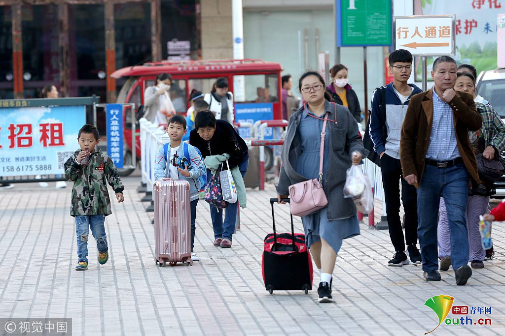 2018年10月1日,江蘇淮安,國慶長假首日淮安汽車總站迎來客流高峰,出行的旅客絡(luò)繹不絕。圖片作者:張照久