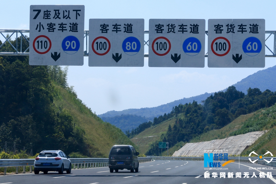 這是廈蓉高速長下坡龍巖路段的道路景觀(無人機拍攝)。新華網(wǎng) 肖和勇 攝
