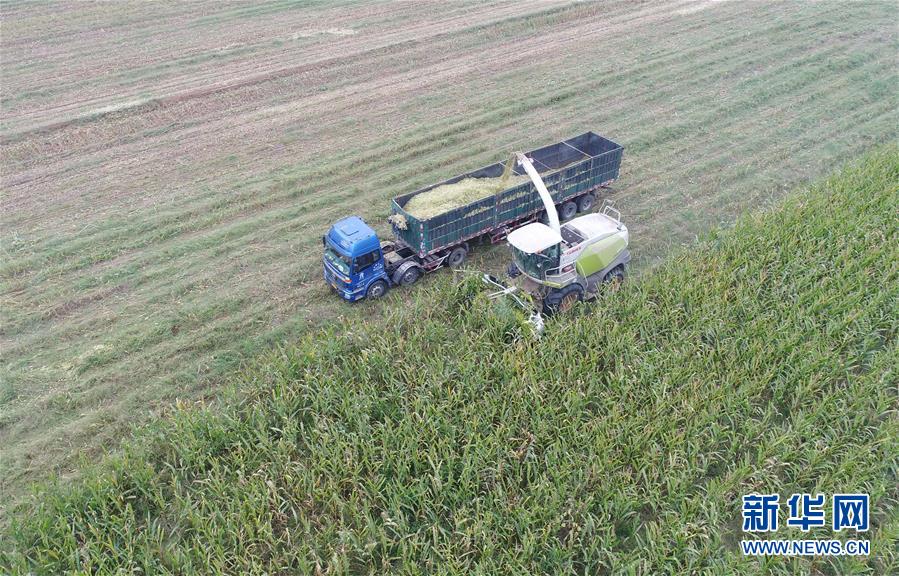 10月8日,河北故城縣里老鄉(xiāng)林場村農民在收獲青貯玉米(無人機拍攝)。 近年來,河北省故城縣結合市場需求,通過“龍頭企業(yè)+基地+農戶”的經營模式,鼓勵引導農民發(fā)展訂單式青貯玉米種植,不僅增加了種植戶收入,而且為養(yǎng)殖企業(yè)提供了優(yōu)質飼料。目前,故城縣已發(fā)展青貯玉米種植面積6萬余畝。 新華社記者 朱旭東 攝