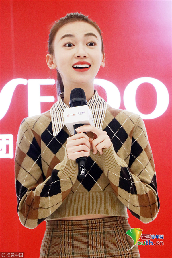 2018年10月8日,上海,吳謹(jǐn)言出席某活動(dòng)。她穿學(xué)院風(fēng)套裝,高梳馬尾嫩似小學(xué)妹,熱聊粉絲甜笑比心少女范十足 。