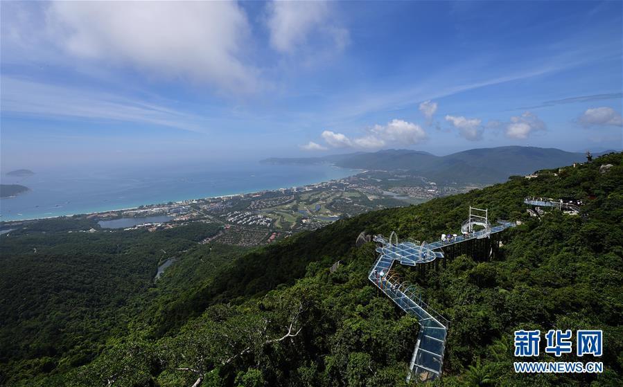8月31日,游客在玻璃棧道上參觀游覽。近日,位于海南省三亞市亞龍灣熱帶天堂森林公園的大佛石全海景玻璃棧道開始正式營業(yè)。凌空而建的玻璃棧道全長400米,游客可將亞龍灣的美景盡收眼底。新華社記者郭程攝