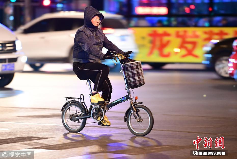 10月9日,受冷空氣影響,沈陽氣溫突降,最低氣溫僅僅2℃,逼近冰點,市民棉衣出行。低溫給出行的市民帶來諸多不便。沈陽 攝 圖片來源:視覺中國