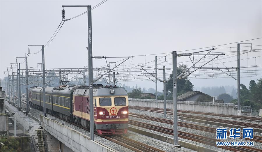 10月14日,試驗列車在位于成都市蒲江縣境內的成雅鐵路成朝段上行駛。新華社記者薛玉斌攝