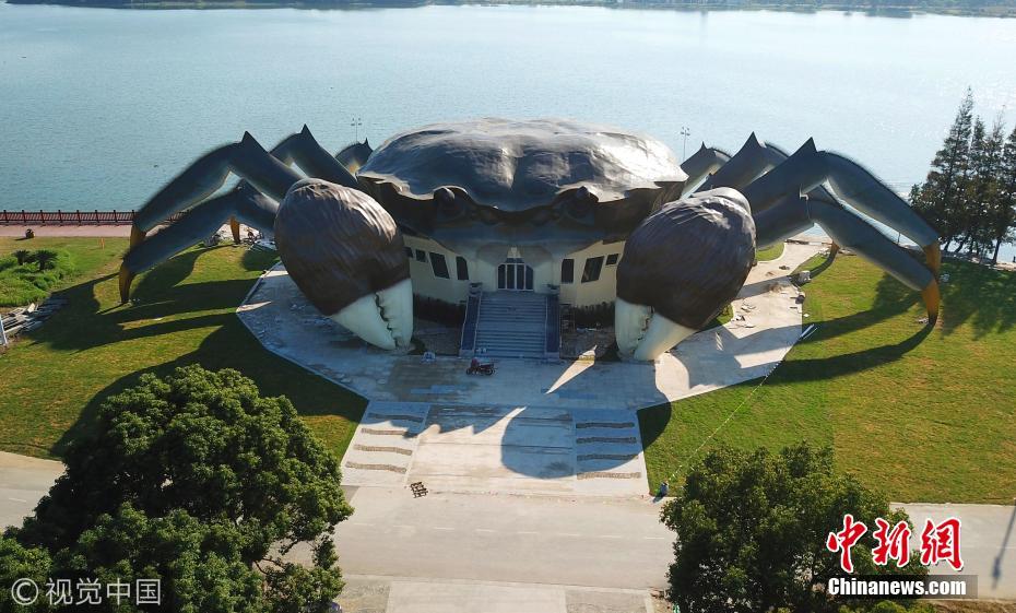 據(jù)了解,這是建造中的大閘蟹生態(tài)館,預(yù)計(jì)未來(lái)將在大閘蟹的白肚內(nèi)容納三層空間,集休閑、娛樂(lè),以及有關(guān)大閘蟹體驗(yàn)于一體的設(shè)施。圖片來(lái)源:視覺(jué)中國(guó)
