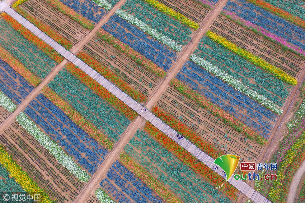 南京50萬株百日菊齊綻放 宛如彩虹落在田野中