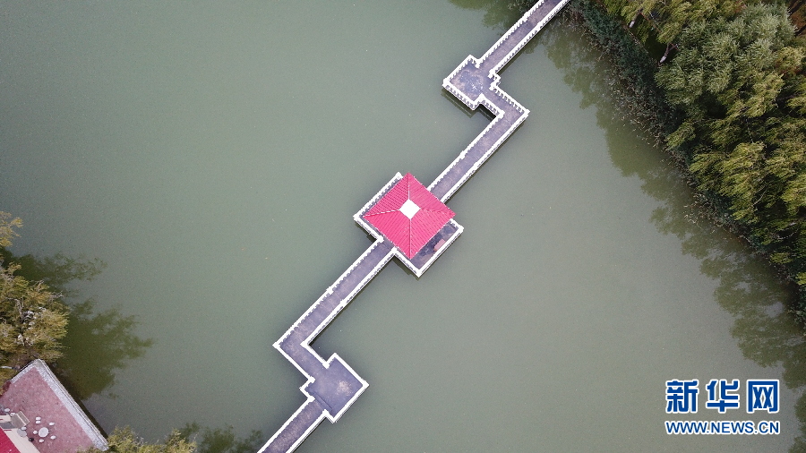 恩格貝生態(tài)示范區(qū)位于庫(kù)布齊沙漠中段,總面積200平方公里。這里曾經(jīng)風(fēng)沙肆虐,恩格貝生態(tài)示范區(qū)建設(shè)者經(jīng)過(guò)長(zhǎng)期艱苦奮斗,用雙手和鐵鍬“種”出一片人造沙漠綠洲,在沙漠里打造了一顆璀璨的生態(tài)明珠,如今這里是國(guó)家生態(tài)旅游示范區(qū)和國(guó)家4A級(jí)景區(qū)。月亮湖位于恩格貝生態(tài)示范區(qū)核心區(qū)域,周?chē)痪G色植被環(huán)繞,在無(wú)人機(jī)航拍視角下,猶如鑲嵌在沙漠綠洲里的一塊碧玉,呈現(xiàn)出大自然的和諧之美。(新華網(wǎng) 王宇 攝)