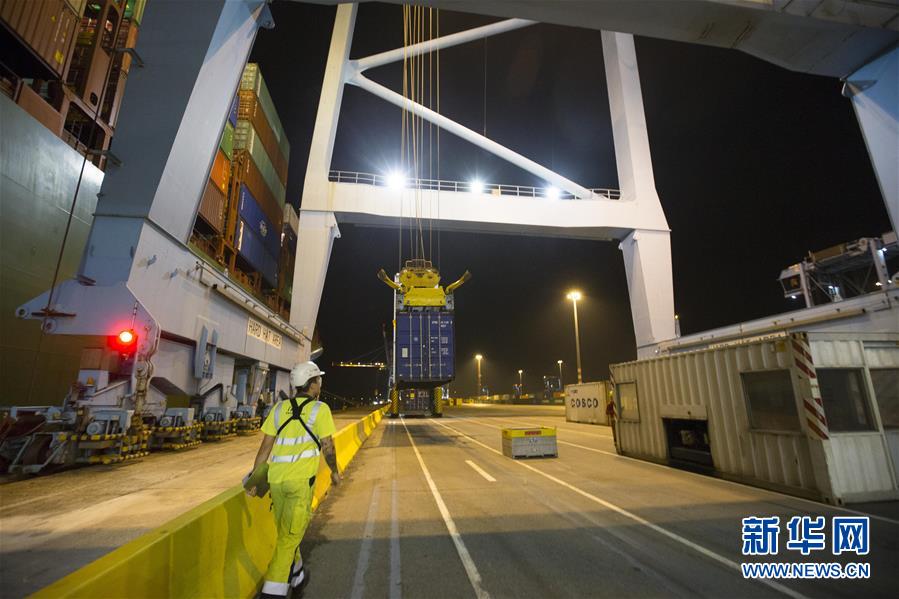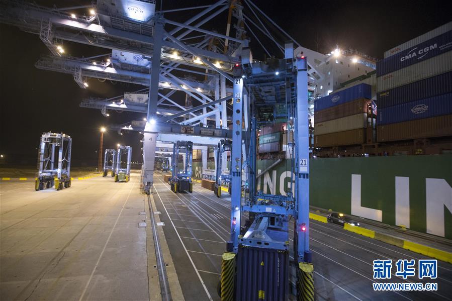 這是10月15日晚在比利時澤布呂赫港拍攝的正在進(jìn)行裝卸作業(yè)的集裝箱碼頭。新華社記者 葉平凡 攝