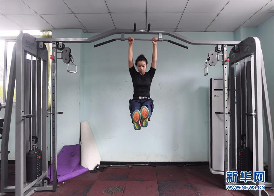 10月16日,湯春燕在健身房?jī)?nèi)進(jìn)行擒敵訓(xùn)練。  新華社記者王全超攝