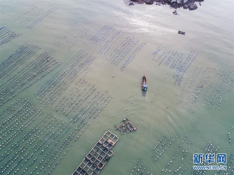 8月18日,南麂島馬祖岙海灣內(nèi),養(yǎng)殖戶乘船在貽貝養(yǎng)殖區(qū)內(nèi)作業(yè)(無人機(jī)拍攝)。進(jìn)入8月,浙江省溫州市平陽縣南麂鎮(zhèn)海域上大片的大黃魚、貽貝等特色海產(chǎn)品養(yǎng)殖區(qū)域迎來豐收季節(jié),養(yǎng)殖戶們駕駛漁船在養(yǎng)殖區(qū)海域進(jìn)行打撈收獲,在碧海藍(lán)天下構(gòu)成了一幅“海上牧場”的美麗豐收景象。近年來,南麂鎮(zhèn)政府引導(dǎo)漁民養(yǎng)殖戶充分發(fā)揮“靠海吃?!钡馁Y源優(yōu)勢,大力發(fā)展海洋養(yǎng)殖經(jīng)濟(jì)和海島旅游經(jīng)濟(jì),實(shí)現(xiàn)了南麂由“生態(tài)美”向“產(chǎn)業(yè)美”,“產(chǎn)業(yè)美”向“經(jīng)濟(jì)美”的轉(zhuǎn)變。同時(shí)該鎮(zhèn)堅(jiān)持以大黃魚、貽貝等為特色產(chǎn)業(yè)支撐,精準(zhǔn)發(fā)展高效海洋養(yǎng)殖業(yè),重點(diǎn)培養(yǎng)一批新型職業(yè)漁民,依靠專業(yè)技術(shù)支持,實(shí)現(xiàn)深海仿生養(yǎng)殖,讓好生態(tài)造就好品質(zhì),重點(diǎn)打造南麂養(yǎng)殖品牌,組建營銷網(wǎng)絡(luò),拓展特色海產(chǎn)品市場。新華社記者 徐昱攝