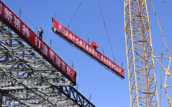 中鐵十一局的工人在川藏鐵路拉林段昌果特大橋進行鋪軌作業(yè)(10月16日攝)。 近日,川藏鐵路拉薩至林芝段昌果特大橋開始鋪設(shè)行軌排、架設(shè)梁片,標(biāo)志著川藏鐵路拉林段正式進入鋪軌階段。 新華社記者 覺果 攝