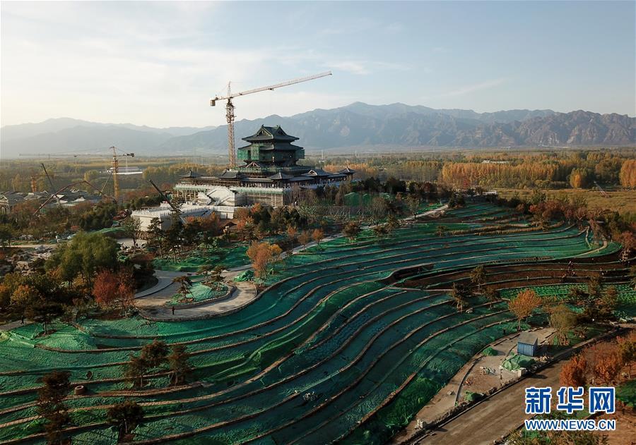10月18日拍攝的建設(shè)中的北京世園會永寧閣(無人機(jī)拍攝)。 新華社記者 羅曉光 攝