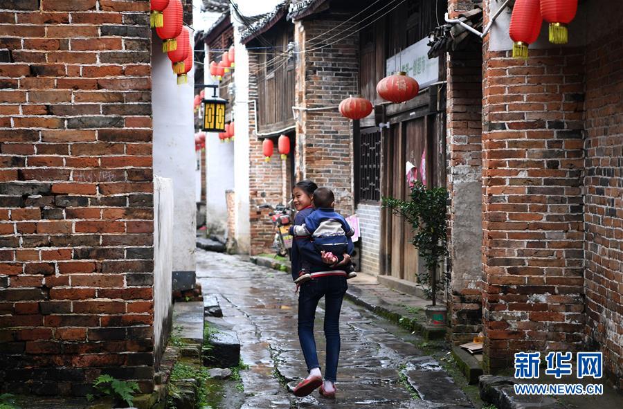 村民行走在廣西富川瑤族自治縣朝東鎮(zhèn)福溪村青石鋪就的古道上(10月19日攝)。 新華社記者 周華 攝