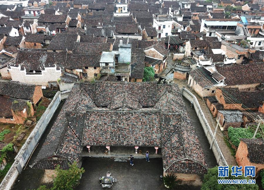 廣西富川瑤族自治縣朝東鎮(zhèn)福溪村連片古民居群(10月19日無人機(jī)拍攝)?! ⌒氯A社記者 周華 攝