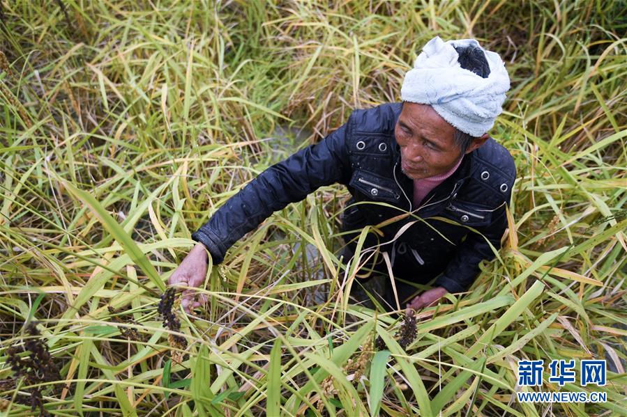 10月17日,在貴州省黔東南苗族侗族自治州從江縣高增鄉(xiāng)占里村,村民在收割香禾糯稻谷。 金秋時(shí)節(jié),農(nóng)民們忙著收獲成熟的農(nóng)作物,喜迎豐收。 新華社記者陳曄華攝
