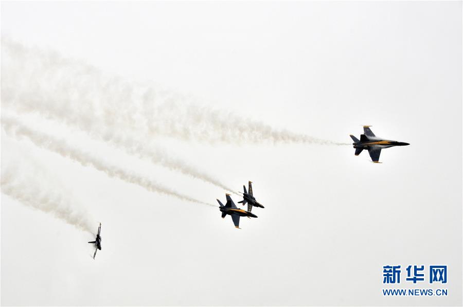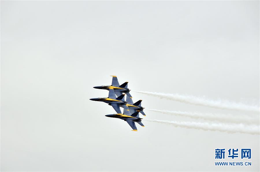 10月20日,在美國休斯敦,美國海軍“藍(lán)天使”飛行表演隊進(jìn)行飛行表演。 新華社記者劉立偉攝