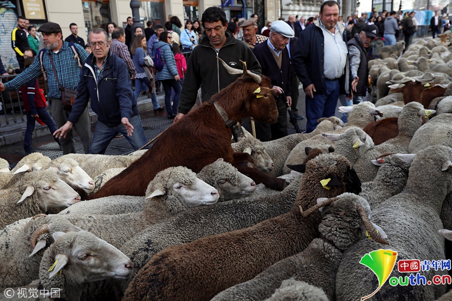 成百上千只綿羊穿越馬德里市街,展示古老的游牧習俗。