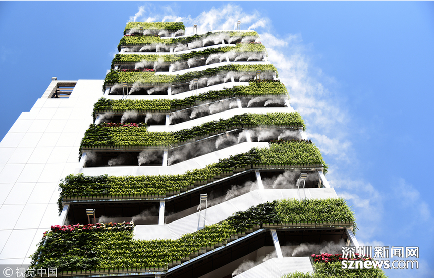 深圳新聞網(wǎng)訊 2018年6月10日,西安,高樓外長滿綠植,還縈繞著霧氣。這段只有6秒的短視頻在抖音火了,網(wǎng)友評論這是“第四代住房”,其實這是西安市眾創(chuàng)示范街區(qū)的一處安裝了智能霧森系統(tǒng)的西北最大戶外垂直綠化。