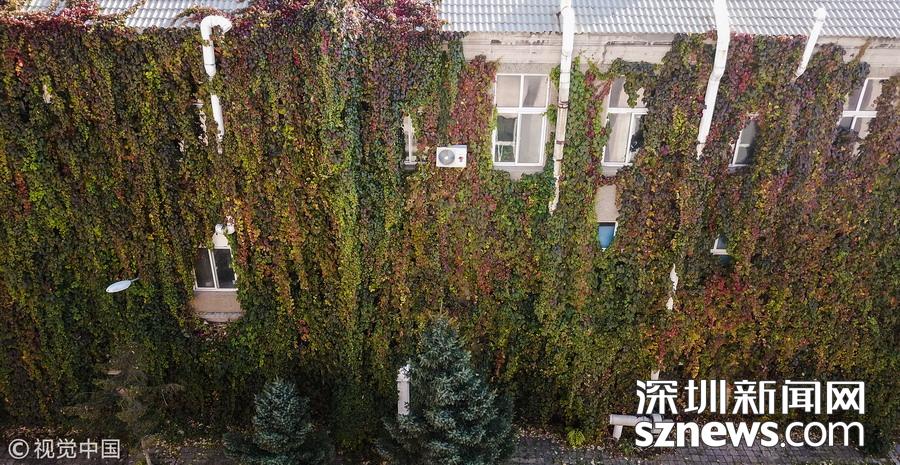 深圳新聞網(wǎng)訊 2017年10月21日,沈陽,懷遠樓北側的墻面也是被爬墻虎所覆蓋,由于陽光很少能照射到植被,所以爬墻虎大都還是綠色。