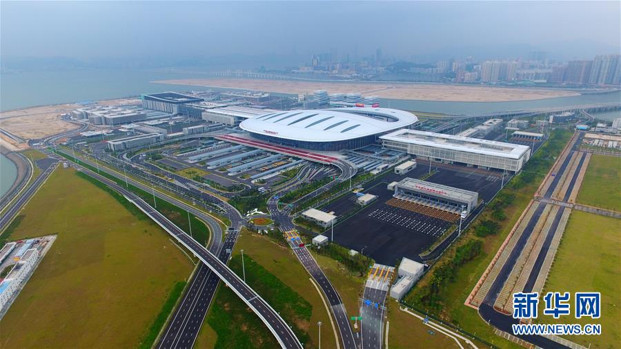 10月24日無人機(jī)拍攝的港珠澳大橋珠海公路口岸。當(dāng)日9時(shí),港珠澳大橋正式通車。 新華社記者梁旭攝