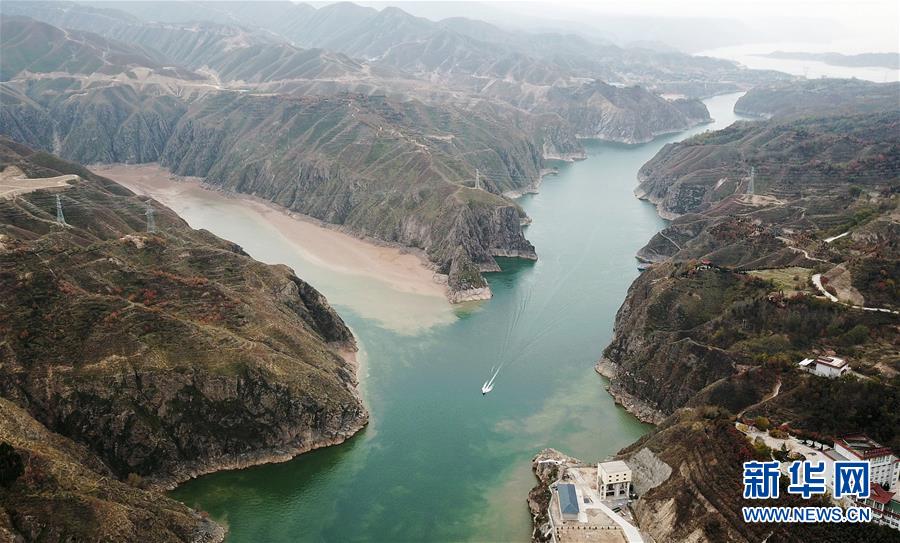 這是10月24日無人機拍攝的劉家峽水庫庫區(qū)和水庫大壩。 新華社記者 陳斌 攝