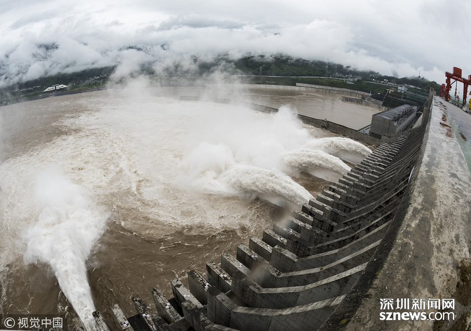 深圳新聞網訊 2018年7月5日,三峽大壩今年首次開閘泄洪。當天,三峽大壩開啟5個泄洪孔下泄洪水,至中午12點左右減至2個。