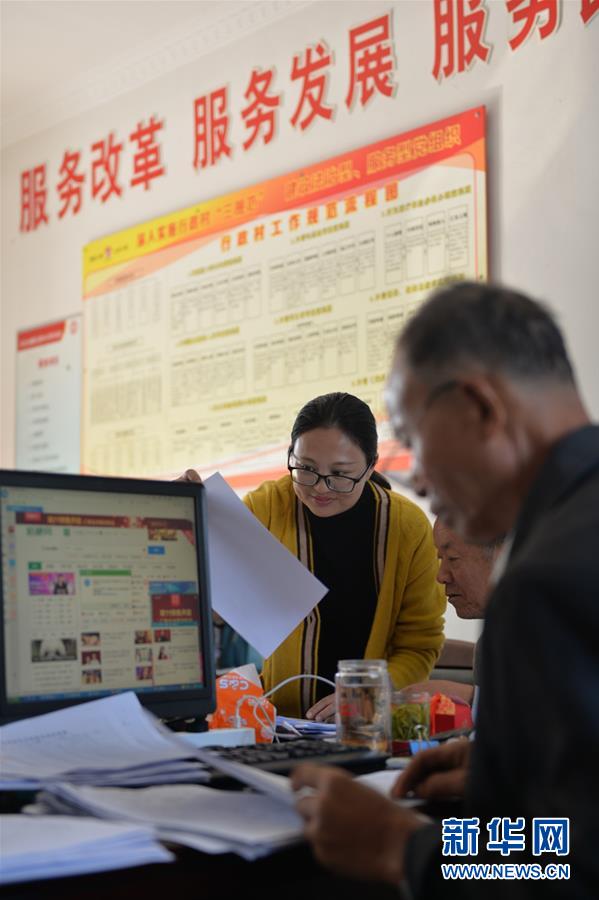 開弦弓村婦女主任周春燕(左一)在村部和同事們一起處理村務(wù)(10月23日攝)?!?0后”周春燕是土生土長的開弦弓村村民,大學(xué)畢業(yè)后回村工作,每天活躍在村里的大街小巷。  新華社記者 尹棟遜攝