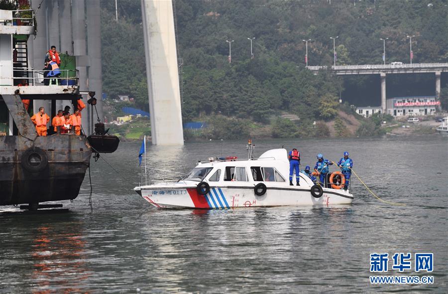 這是10月29日拍攝的重慶萬州公交車墜江事故救援現(xiàn)場(chǎng)。新華社記者 王全超 攝