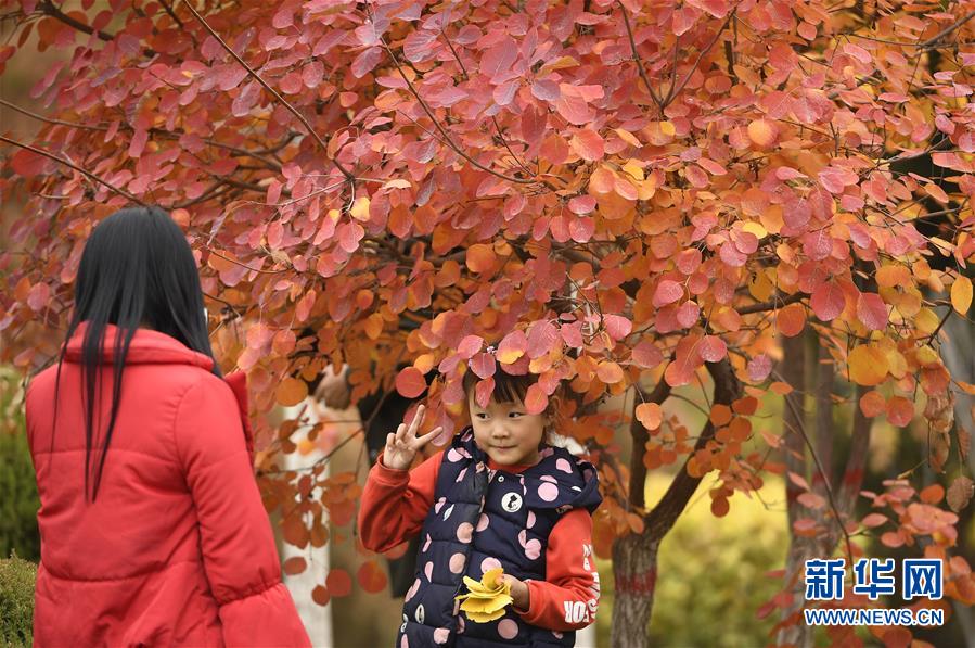市民在寧夏銀川市鳳凰公園欣賞秋景(10月20日攝)。
