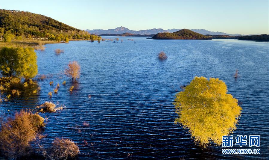 金秋時(shí)節(jié),北京密云水庫(kù)沿岸樹(shù)林逐漸變黃,山水相映,恬淡寧?kù)o。 新華社記者李欣攝